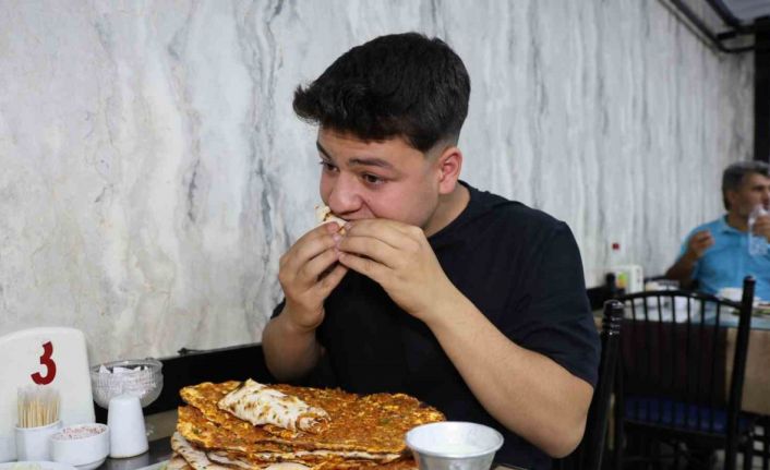 Yaşına ve kilosuna bakmadan bir oturuşta 15 lahmacun yiyor