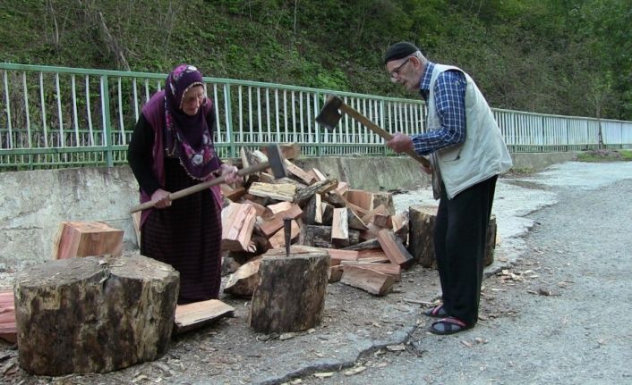 Artvin’in Borçka ilçesine bağlı Demirciler Köyünde yaşayan 82 yaşındaki Metin Büyük ve eşi 75 yaşındaki Fikriye Büyük, ilerleyen yaşlarına rağmen, kışa hazırlıklarını kendi imkanlarıyla sağlıyor. Evde oturup yardım beklemek yerine baltayı ellerine alan çift, yıllardır yaptığı işlerden biri olan kışlık odun hazırlıklarını kendi imkanlarıyla sağlıyor.