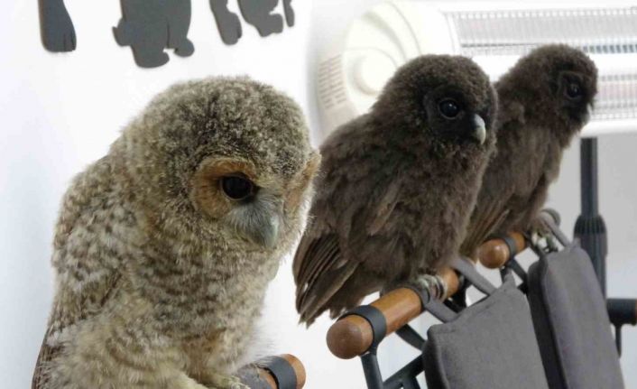 Trabzon’da ikisi yavru üç baykuş, Yomra ilçesinde bulunan bir veteriner kilniğinde özel bakıma alınırken, sevimlilikleriyle ilgi odağı oluyor.