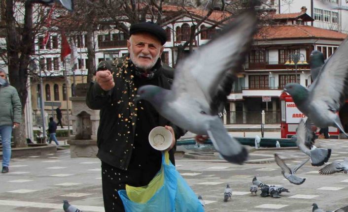Amasya’da 84 yaşındaki Cahit Kalaycı, 20 yıldır emekli maaşından ayırdığı parayla aldığı yemler ve topladığı bayat ekmeklerle sokaklardaki güvercinleri besliyor. Kuşların aç kalmaması için her gün kahvaltıdan önce şehri dolaşan güvercinlerin ‘Yemci Dede’si kendisini evinde ziyaret eden Vali Önder Bakan’ın getirttiği 4 çuval yemi duyunca oturduğu yerde oynayıp sevindi.