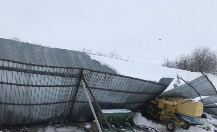 Kırşehir’in Çiçekdağı ilçesinde etkili olan kar yağışı nedeniyle bir mandıranın çatısı çöktü.