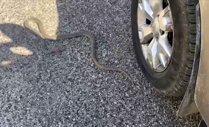 Gümüşhane merkeze bağlı Akgedik köyü Gümüşlük mahallesinde güneşlenmek için asfalt yola uzanan yılanı ezmemek için yoldan çıkarmak isteyen vatandaşlar uzun uğraşlar verdi.