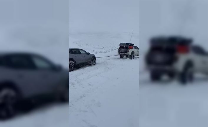 Erzurum’un Tekman ilçesine bağlı Düzyurt Mahallesinde kar ve tipi nedeniyle yolda kalan sürücü Macera Off-Road ekibinin yardımıyla kurtarıldı.