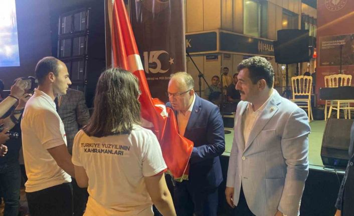Ardından Gençlik Spor Bakanlığınca Türkiye genelinde eş zamanlı olarak yapılan sancak koşusunda getirilen Türk bayrağı, Zonguldak Valisi Mustafa Tutulmaz’a teslim edildi. Bayrak teslim törenin ardından koşuda dereceye giren sporculara Vali Tutulmaz ve protokol üyeler tarafından katılım belgesi verildi.