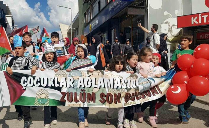 İsrail’in Gazze’ye yönelik saldırılarını protesto etmek ve Filistinli çocuklara yönelik zulme dikkat çekmek amacıyla Karabük’te çocukların öncülüğünde yürüyüş düzenlendi.