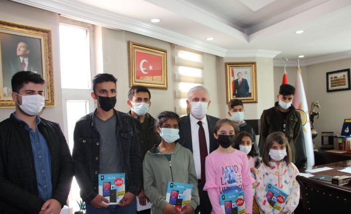 AK Parti Hakkari İl Başkanı Abdulmuttalip Özbek, 15 öğrenciye tablet desteğinde bulundu,