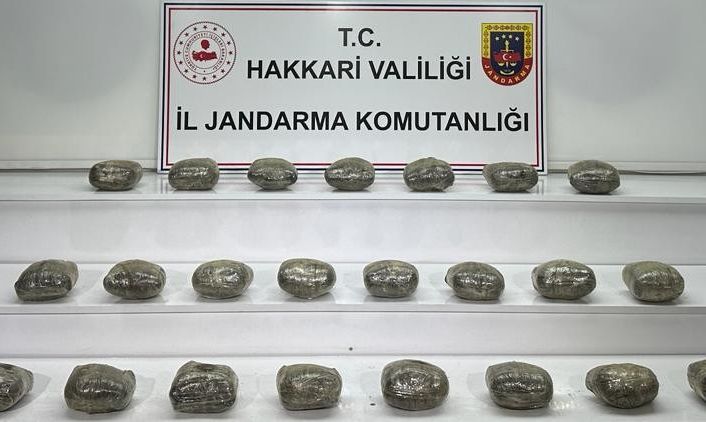 Hakkari Valiliği tarafından yapılan açıklamada, "İl Jandarma Komutanlığı görevlilerimiz tarafından “Uyuşturucu veya Uyarıcı Madde İmal ve Ticareti” suçunu önlemeye yönelik yürütülen çalışmaları 2023 yılında da devam ediyor. Bu çalışmalar çerçevesinde 1 Ocak 2023 günü saat 21.00 sıralarında Yüksekova ilçesi kırsalında icra edilen arazi araması sonucunda dere yatağı içerisine gizlenmiş şekilde 1 çuval içerisinde 25 paket halinde; yaklaşık olarak 25 kilogram eroin maddesi ele geçirildi" denildi.