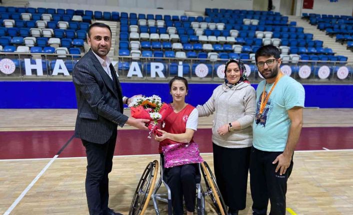 AK Parti Hakkari İl Gençlik Kolları Başkanı Kenan Beyter, bir süre önce İspanya’nın Madrid kentinde gerçekleştirilen Kadınlar Avrupa Şampiyonasına Tekerlekli Sandalye Basketbol A Milli Takımı ile katılan Hakkarili Ceylan Yılmaz’ı tebrik ederek çiçek ve hediyeler takdim etti.