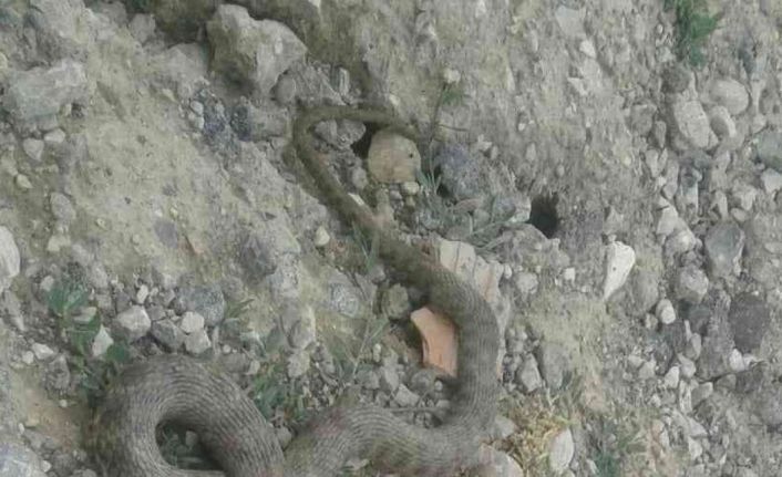 Hakkari’nin Çukurca ilçesinde 3 metrelik engerek yılanı görüntülendi.