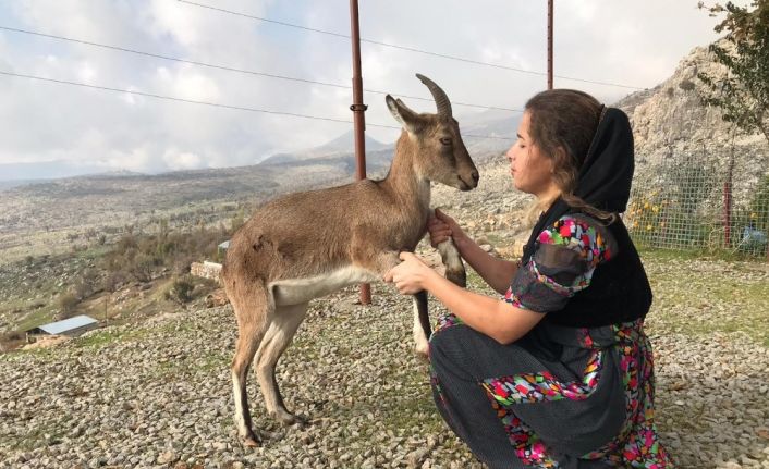 Hakkari’nin Irak sınırında bulunan Derecik ilçesinde yavruyken buldukları ve ‘Gule’ ismini verdikleri dağ keçisini evlerinde besleyen Dinç ailesi, ona gözü gibi bakıyor.