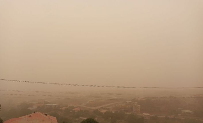 Hakkari’nin Derecik ilçesinde iki gündür etkili olan toz taşınımı nedeniyle gökyüzü kahverengine bürünürken, araçların ise rengi değişti.