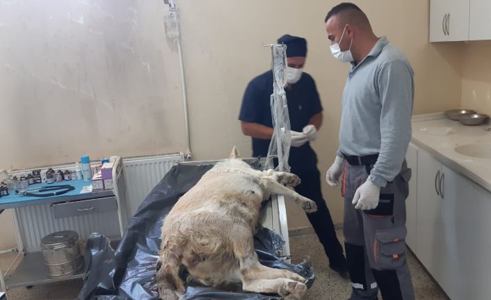 Belediyeye ait kliniğe getirilen beyaz kurt cinsi köpek için ekipler seferber oldu. Yapılan muayenesinde gebe olduğu tespit edilen ve aldığı darbelerden dolayı doğum yapamayan köpeğe gerekli sıvı takviyesi yapılarak müşahede altına alındı.