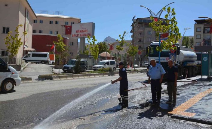 Sıcakların her geçen gün arttığı Hakkari’de, araçların geride bıraktığı tozdan vatandaşların rahatsız olmaması için belediye ekipleri harekete geçti. İtfaiye ekipleri, Zabıta Müdürlüğü ekiplerinin gözetiminde kentin birçok noktasını tazyikli suyla yıkadı.