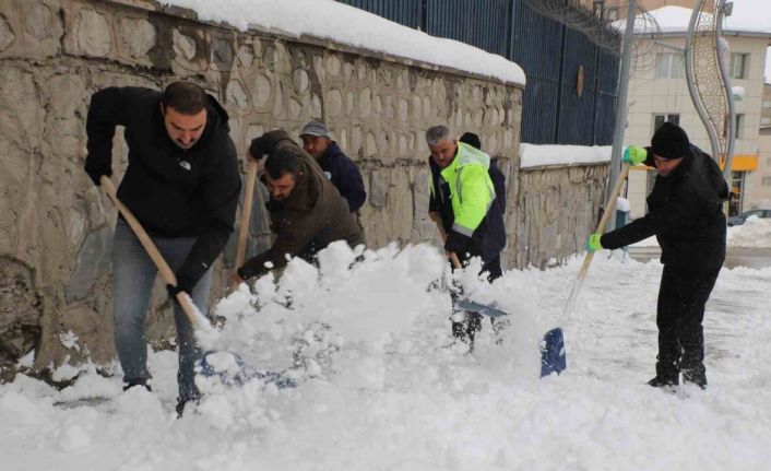Özel Kalem Müdürü Butan Taş ise kar timine destek vererek kürekle kar temizleme çalışmalarına katıldı.