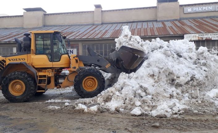 Hakkari Küçük Sanayi Sitesi kar dağlarından temizlenmeye başlandı.