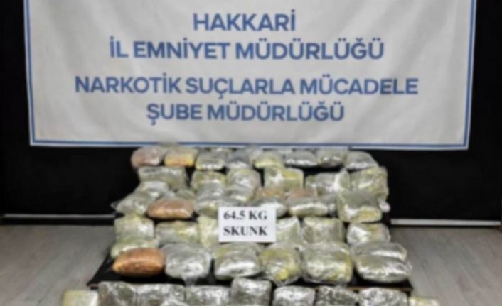 HAKKARİ (İHA) – Hakkari’de polis ekiplerince düzenlenen operasyonda 64,5 kilogram skunk ele geçirildi.