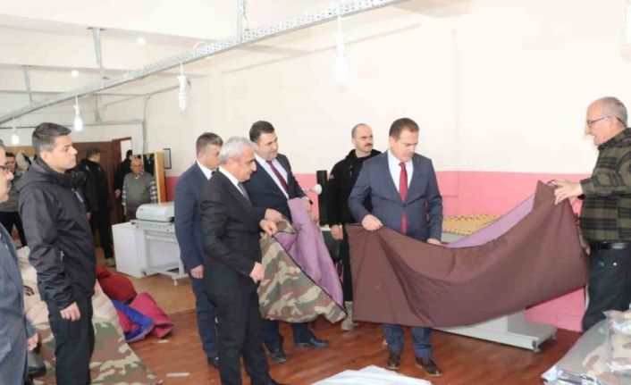 Hakkari Valisi ve Belediye Başkan Vekili İdris Akbıyık, Kahramanmaraş merkezli depremlerden etkilenen vatandaşlar için üretilen uyku tulumu atölyesini ziyaret etti.
