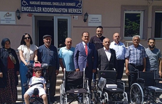 Hakkari Bedensel Engelliler Derneği girişimleriyle ihtiyaç sahibi 4 engelliye akülü sandalye puset ve manuel sandalye hediye edildi.