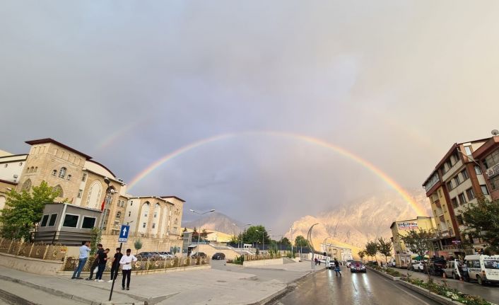 Hakkari’de akşam saatlerinde etkili olan yağmurun ardından çıkan gökkuşağının güzelliği görenleri adeta büyüledi.