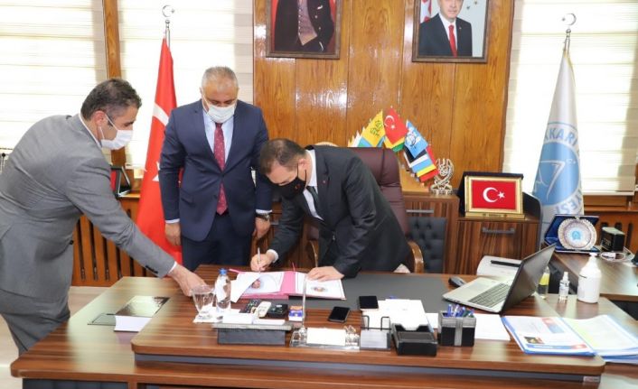 Hakkari eski hükümet konağı parkında yapılacak olan halk pazarı yapım protokolü Vali İdris Akbıyık ve Atatürk Mesleki ve Teknik Anadolu Lisesi Müdürü Sıtkı Zerek tarafından imzalandı.