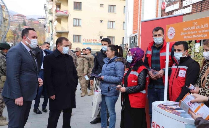 Hakkari Valisi ve Belediye Başkan Vekili İdris Akbıyık, 25 Kasım Kadına Yönelik Şiddete Karşı Uluslararası Mücadele Günü dolayısıyla toplumda farkındalık oluşturmak amacıyla belediye önünde kurulan stantları ziyaret etti.