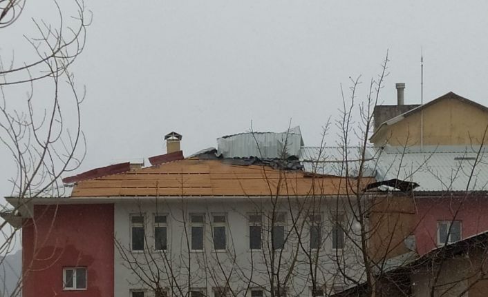 Hakkari’de etkili olan kuvvetli rüzgar bazı mahallelerde çatı uçurdu.