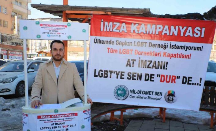 Hakkari’de Manevi İlkeli Liyakatli Diyanet ve Vakıf Çalışmaları Sendikası (Mil-Diyanet Sen) üyeleri, LGBT derneklerinin kapatılması için imza kampanyası başlattı.