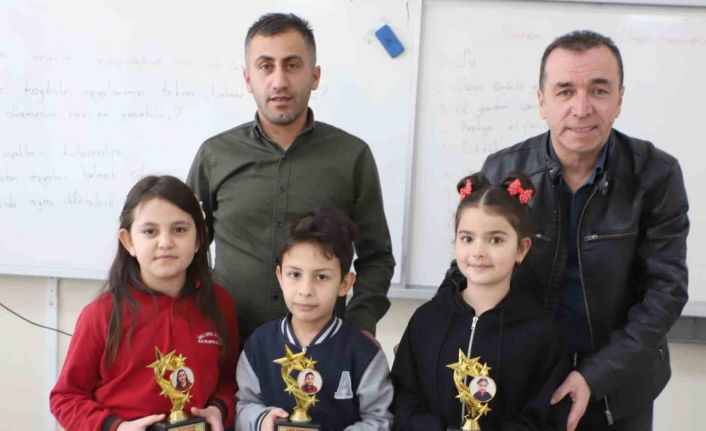 Müdür Ecer, öğrencileri tebrik ederek sınavda birinci olan Jinda Özkan, Alya Şahin ve Emir Sönmez’e özel tasarımlı kupalarını taktim etti. Jinda Özkan ise emeği geçen sınıf öğretmeni ve okul yönetimine teşekkür etti.