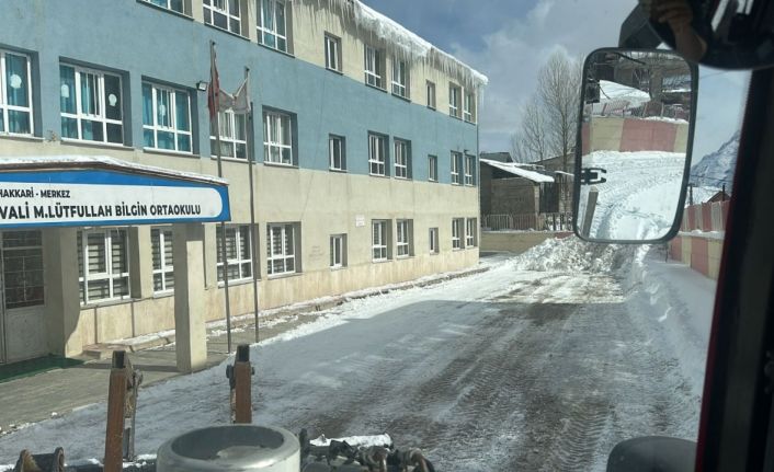 Hakkari Belediyesi karla mücadele ekipleri, öğrencilerin güvenli bir şekilde okullarına ulaşmasını sağlamak amacıyla okul ve pansiyon önlerini kardan arındırdı.