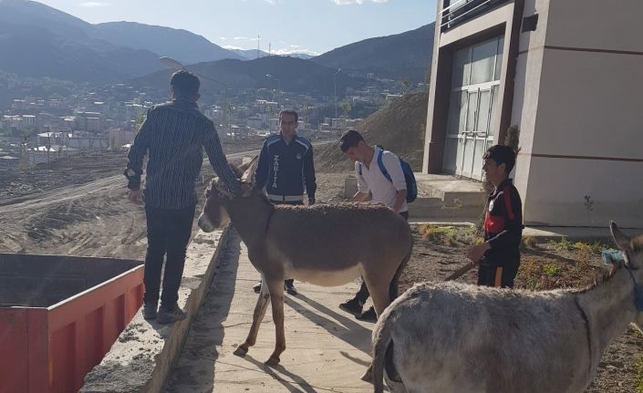 Çarşı merkezinde görünen ve henüz sahipleri ortaya çıkmayan 3 eşek, zabıta müdürlüğü ekiplerini harekete geçirdi. Zabıt ekipleri, sahipleri ortaya çıkmayan eşekleri çarşı merkezinden kamyonla kent dışına çıkartı.