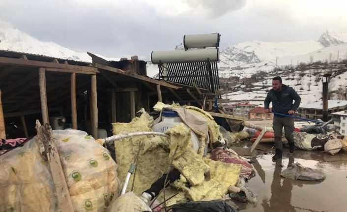 Hakkari’de akşam saatlerinde etkili olan şiddetli rüzgar bazı evlerin çatılarını uçurdu.