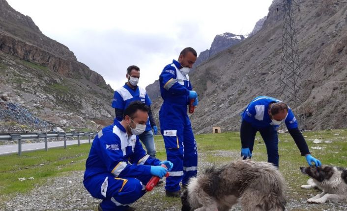 Hakkari Belediyesi Veteriner İşleri Müdürlüğü ekipleri, dezenfekte çalışmalarının yanında sokak hayvanlarına yem desteğinde de bulunuyor.