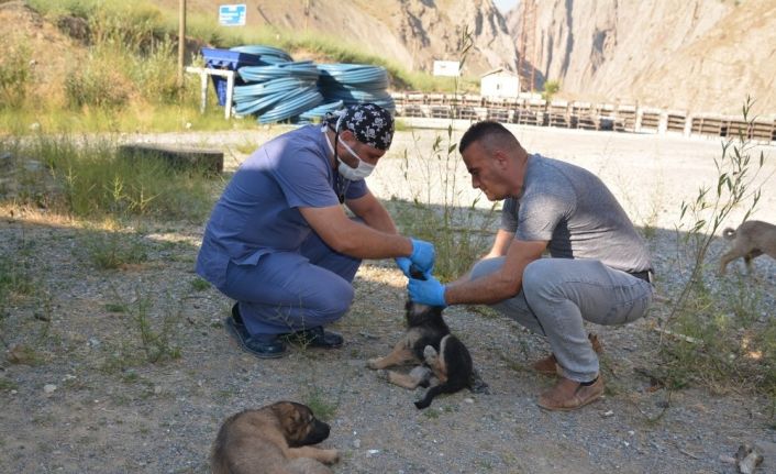 Hakkari-Van karayolu üzerinde bulunan bir iş yerindeki yavru köpekler ise ekipler tarafından sağlık taramasından geçirilerek parazit aşıları yapıldı.