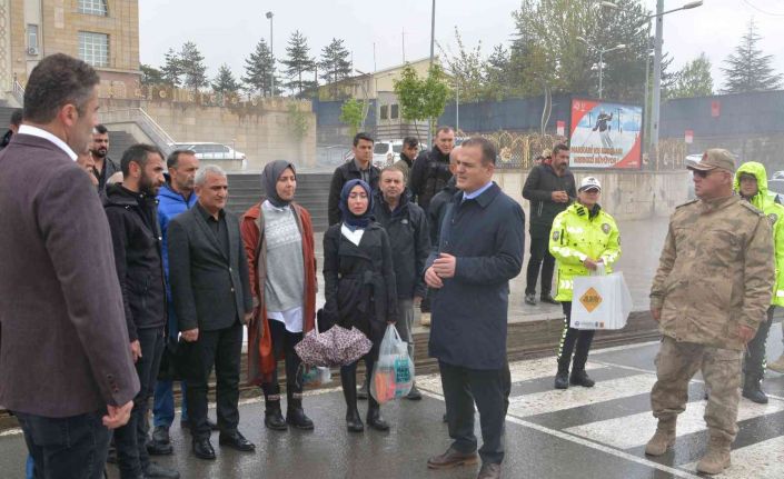 Vali Akbıyık, yolda geçen sürücülere trafik kurallar hakkında bilgi verip kendilerine broşür dağıttı. Yolda geçen, öğretmen, öğrenci ve vatandaşlarla da bir araya gelen Vali Akbıyık, trafik kuralları hakkında kendilerine bilgi vererek, çocuklara oyuncak hediye etti.