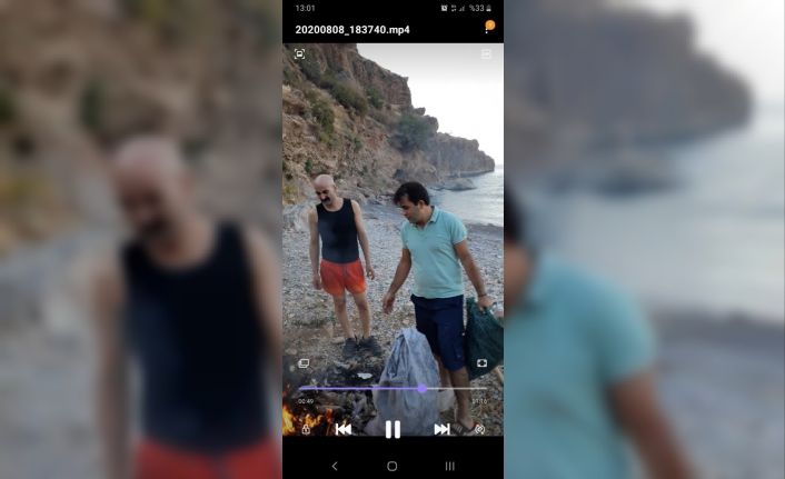 Etrafa rastgele atılan çöpleri 2 saatlik bir çalışmanın ardından topladıktan cep telefonuyla kaydettikten sonra yakarak imha eden doğaseverler Çiftçi ve Ölmez, vatandaşları çöp konusunda duyarlı olmaya davet etti.