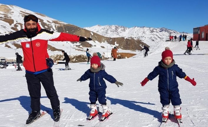 İzmir’den Hakkâri’ye tahini çıkan öğretmenin ikiz çocukları kayak keyfini doyasıya yaşadı.