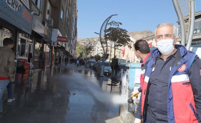 Hakkari Belediyesi dezenfekte ekibi, Hakkari Valisi ve Belediye Başkan Vekili İdris Akbıyık’ın talimatıyla 7 gün 24 saat kentin dört bir yanını dezenfekte ediyor. Hakkari Belediyesi İtfaiye Müdürlüğü ekipleri, korona virüs tedbirleri kapsamında cadde ve sokaklardaki temizlik çalışmasını sürdürüyor. Ekipler, Bulvar, Cumhuriyet, İstiklal, çevre yolu ile değişik mahalle yollarını deterjan döküp fırçalayarak yıkadıktan sonra dezenfekte etti. Belediye ekiplerinin düzenli bir şekilde cadde ve sokakları yıkadığını belirten vatandaşlar, bu duyarlılıktan dolayı belediye ye teşekkür ettiler.