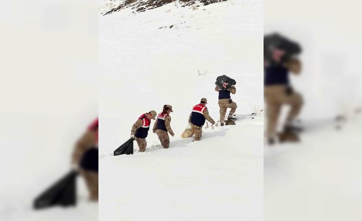 Hakkari İl Jandarma Komutanlığı ekipleri tarafından sokak ve yaban hayvanları için doğaya yiyecek bırakıldı.