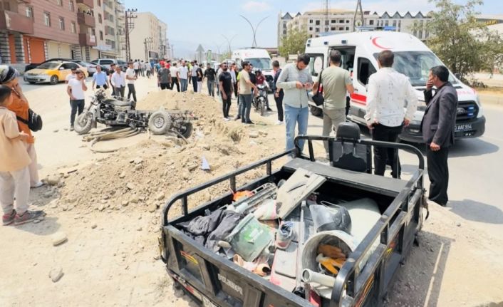 Hakkari’nin Yüksekova ilçesinde kamyonetin arkadan çarptığı 3 tekerlekli yük motosikleti ikiye ayrılırken, sürücüsü ise yaralandı.