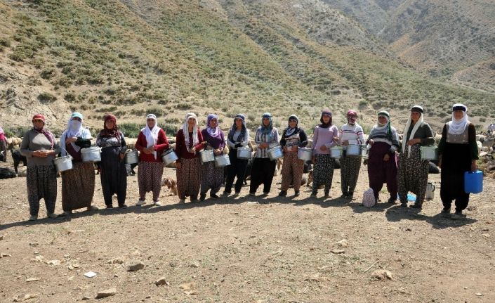 Hakkari’nin Yüksekova ilçesinin Kamışlı köyünde yaşayan 35 kadın, her gün kavurucu sıcakta Beşpınar Yaylası’nda sağdıkları bin 100 koyundan 400 kilo sütle evlerine dönüyor.