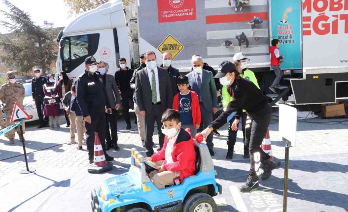 HAKKARİ (İHA) – İçişleri Bakanlığı ve Milli Eğitim Bakanlığı tarafından öğrencilere trafik eğitimi verilmesi amacıyla hayata geçirilen proje kapsamında hazırlanan mobil trafik eğitim tırı Hakkari’ye geldi.