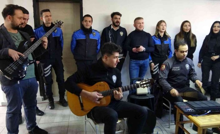 Hakkari’nin Yüksekova İlçe Emniyet Müdürlüğü tarafından oluşturulan polis korosu, öğrencilere yönelik müzik etkinliği düzenledi.