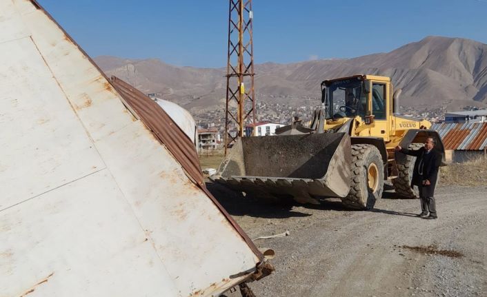 Hakkari Belediyesi ekipleri tarafından sanayi sitesinde çevre kirliliğine neden olan barakalar kaldırıldı.