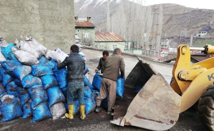 Hakkari’nin Şemdinli Belediyesi, evlerin önünde biriken kömür küllerini ve çöpleri temizledi.