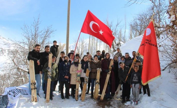 Şemdinli İmam Hatip Okulu öğretmenleri ve öğrencileri, Kayalar köyüne gelerek köylülerle beraber dişbudak ağacından yapılan kayak takımlarını ayaklarına takarak kaymaya çalıştı. Öğretmenler ve öğrenciler, Türk bayrağını açarak kayak yapmanın keyfini yaşadı.