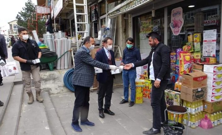 Güven ve beraberindekiler, merkezde üretilen maskeleri ilçe merkezinde esnaf ve vatandaşlara dağıttı.