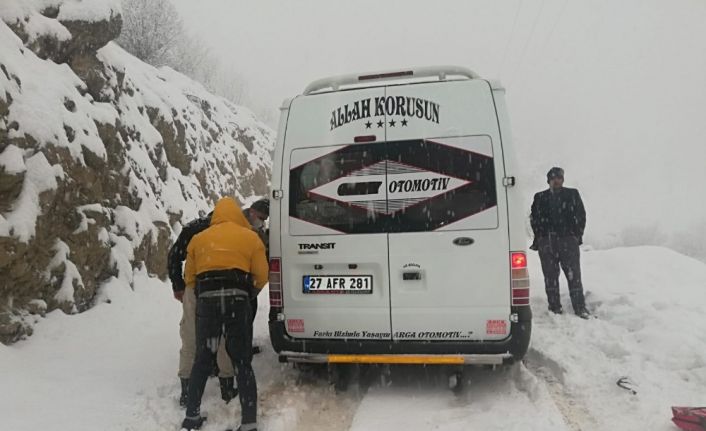 Hakkari’nin Şemdinli ilçesinde etkisini gösteren kar yağışı nedeniyle birçok araç yolda mahsur kaldı.
