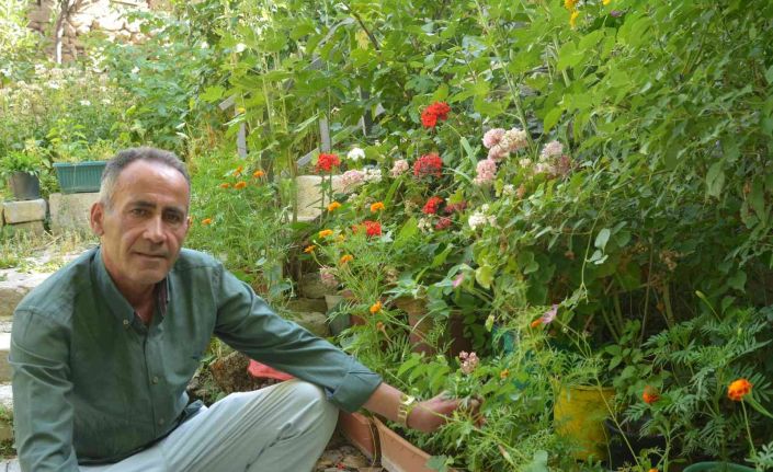 Hakkarili ses sanatçısı Ahmet Duman, 650 metrekarelik arsasında kurduğu bahçede ektiği çiçekleri şarkılarla büyütüyor.