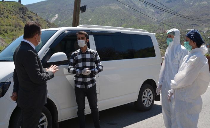 Sağlık ekiplerinden çalışmalar hakkında bilgi alan Vali Akbıyık, yolcularla da görüşerek tedbiri elden bırakmamalarını istedi. Burada basın mensuplarına açıklamada bulunan Vali Akbıyık, şu anda Hakkari-Şırnak karayolu üzerinde Çukurca ve Hakkari’ye giden kontrol noktasında sağlık ekiplerinin yapmış olduğu kontrolleri yerinde görüp denetlediklerini söyledi. Vali Akbıyık, “Hakkari ilimizde korona virüs ile ilgili Hakkari-Van arası Yeni Köprü ile Hakkari-Şırnak girişinde ilimize gelen tüm araçlar kontrol ediliyor. Ateşler ölçülüyor, şikayetleri dinleniyor ve alınıp değerlendiriliyor. Hakkari’de maalesef konona virüs vakası var. İçişleri Bakanlığımızın, Sağlık Bakanlığımızın genelge ve emirleri doğrultusunda her türlü tedbiri alıyoruz. 65 yaş ve üzeri ile 20 yaş altı dışarı çıkmamaları konusunda gerekli uyarılar yapılmıştır. Hakkari’de tüm marketlerimizin denetimi yapılıyor. Hakkari Belediyesi olmak üzere ilçelerimizdeki tüm belediyeler gerekli temizliği ve dezenfekte çalışmalarını günlük olarak yapıyorlar. Tüm kamu kurum ve kuruluşlarımız hıfzıssıhha kurulunun almış olduğu kararlar doğrultusunda her türlü önlemimizi alıyoruz. Asker, jandarma, polisi ve sağlık ekiplerimiz her türlü önlemi almış durumda. İnşallah Hakkari olarak bu korona virüs belasını en az zararla def edeceğiz. Hakkari sosyal mesafeye uyuyor. Havanın güzel olmasına rağmen sokakta çok fazla insan görmüyoruz. İnşallah bu bilinç biraz daha artacak. Hakkari’de bulunan 10 vaka taburcu oldu ve yeni taburcu olacaklar da var” dedi.