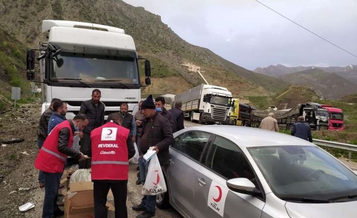 Hakkari-Van karayolunda meydana gelen heyelanda yolda mahsur kalan onlarca sürücünün imdadına Kızılay Derneği Hakkari Şubesi yetişti.